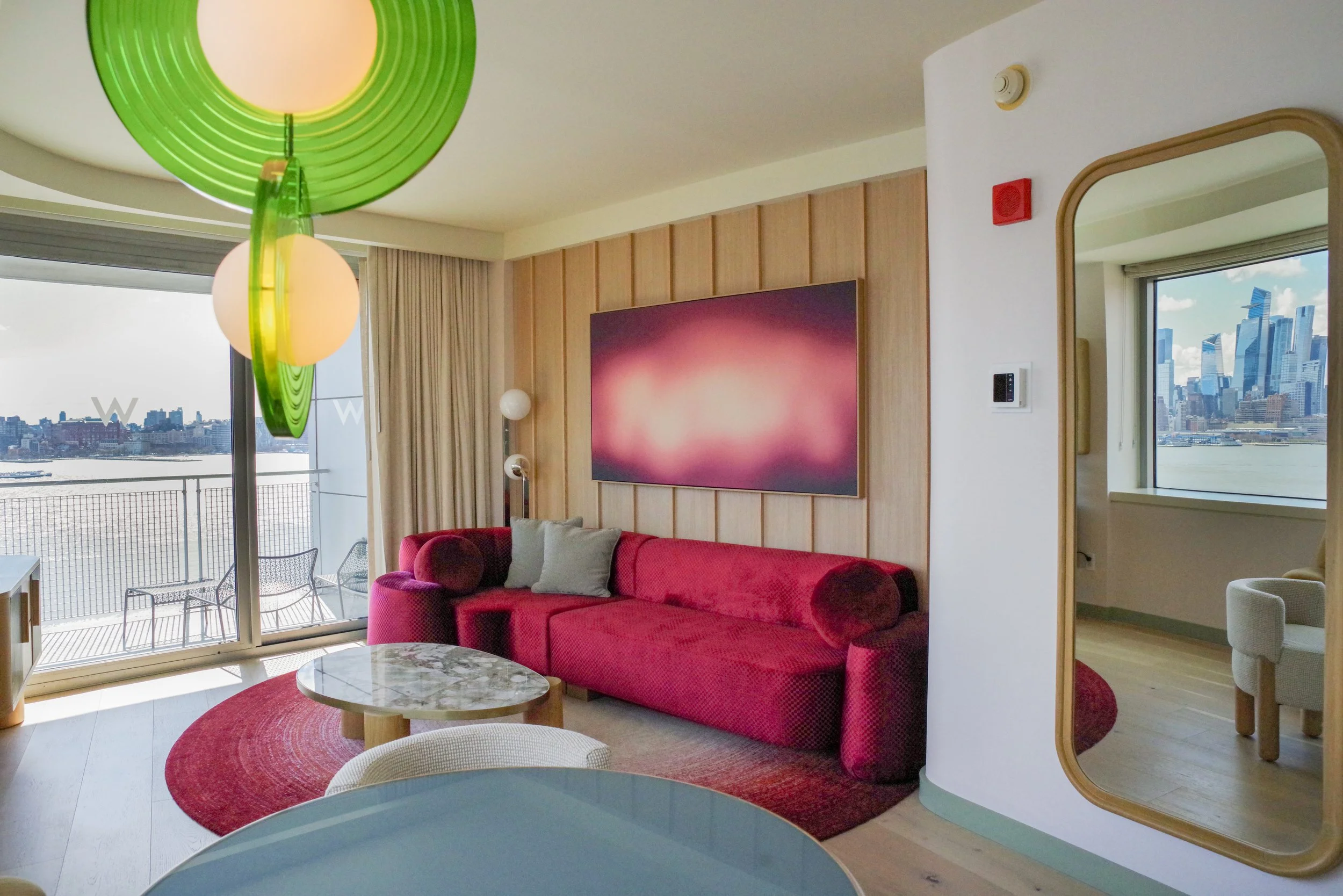Base camp was the W Hoboken, recently renovated and earning every bit of it. The rooms are exquisitely appointed — the kind of tactile design a production designer would notice immediately. But the real asset is position: right on the waterfront, with an unobstructed view of the Manhattan skyline across the Hudson like a painted backdrop. From my perspective, the adjacent waterfront path and proximity to shops and restaurants on Washington Street lend a genuine livability for cast and crew working long days.